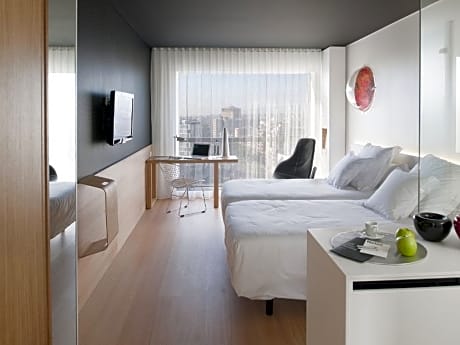 Situé au-dessus de la gare de Barcelone Sants, le Barceló Sants offre une ambiance subtile inspirée de l'espace. Ses chambres minimalistes disposent du Wi-Fi gratuit, d'une douche à effet pluie et de grandes fenêtres avec vue sur la ville. Climatisées, elles présentent une décoration moderne et un mobilier design. Chacune est équipée d'une station d'accueil pour iPod, d'une télévision à écran plat et d'un plateau/bouilloire. La salle de bains est pourvue d'un sèche-cheveux. Cet hôtel design comprend une salle de sport. L'hôtel abrite le restaurant Oxygen, où vous pourrez déguster un délicieux petit-déjeuner buffet complet et équilibré. L'Orbital Bar est également un lieu idéal pour déconnecter du quotidien ; un endroit convivial et idéal pour savourer un délicieux cocktail en amoureux ou pour se détendre autour d'un verre entre collègues après une longue journée de travail. La gare et station de métro de Sants offre un accès direct à l'aéroport de Barcelone et au centre-ville historique, à 3,5 km. L'hôtel est également desservi par le train à grande vitesse AVE (TGV) vers Madrid et les trains internationaux. La réception est ouverte 24h/24 et vous pouvez louer une voiture auprès du bureau d'excursions. Un parking est disponible sur place moyennant un supplément et l'hôtel dispose d'une zone Wi-Fi.