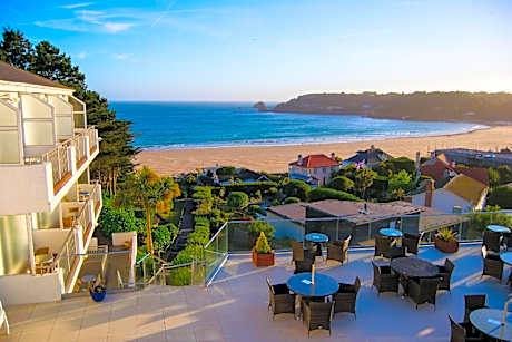 With panoramic views of St Brelade’s beach, the Biarritz Hotel features scenic floral landscaped gardens, which lead down to the beach and promenade. Every room features an private bathroom, flat-screen satellite TV and tea/coffee making facilities. Breakfast, lunch and dinner are served in the air-conditioned restaurant, and snacks are available in the café. Free on-site parking and WiFi is available. The town of St Helier is 5.2 mi away and features many shops, bars restaurants and pubs. Jersey Airport is just 2.5 mi away and the fishing port of St Aubin is 1.4 mi from the hotel.