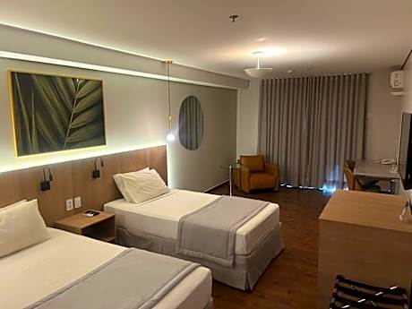 JK Premium Hotel e Eventos – Comfort and Convenience in the Heart of Londrina Located in the city center of Londrina, Paraná, JK Premium Hotel e Eventos offers comfort, convenience, and a welcoming atmosphere for both business and leisure travelers. The hotel features a swimming pool, solarium, and fitness center, along with free Wi-Fi throughout the property. Each room is air-conditioned and equipped with a Smart TV with cable channels, mini-bar, in-room safe, and work desk, ensuring a relaxing and productive stay. Guests can enjoy a delicious selection of local and international cuisine at the on-site restaurant, or unwind with a variety of hot and cold beverages at the stylish lobby bar. Conveniently located just 3.1 mi from Londrina Airport and 1.9 mi from the city’s bus station, JK Premium Hotel e Eventos is the perfect base for exploring the city or hosting memorable events.
