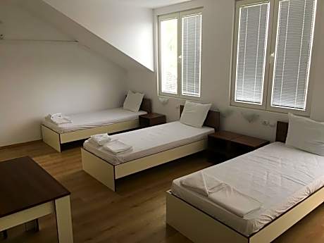 The quadruple room features a TV, air conditioning, a wardrobe, as well as heating. The unit has 3 beds.
