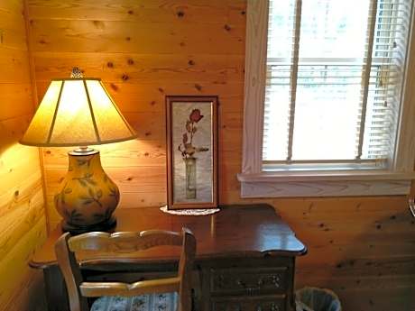 Cozy room with garden views, a CD player and wooden furniture and walls. The private bathroom comes with free toiletries.