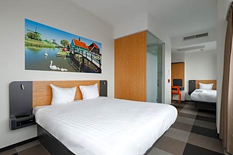 EasyHotel Amsterdam Zaandam offers a convenient location right in the city center of Zaandam. With brilliant basics such as comfortable beds, super-fast free WiFi, black out curtains, TV and air-conditioning, our rooms with attached bathroom provide all the essential amenities for a great night’s sleep. All rooms are located on the 9th, 10th and 11th floor of the building offering sweeping city views at a great value price. The hotel offers bike hire so you can get out and explore the city like a local, which is available to purchase alongside other extras at the 24-hour front desk. We encourage you to discover the local cuisine while here, but if you get peckish during your stay, we have a vending machine with drinks and snacks and hot drinks available on the 10th floor. There is a train station 656 feet from the hotel, providing direct access to Amsterdam Central Station within 11 minutes. The nearest airport, Amsterdam Schiphol Airport, can be found 9.3 mi from the hotel. Please note that your room can be cleaned every 6th day for free. Extra room clean costs €20.