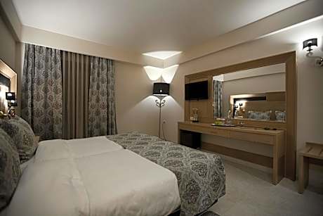 Located in Laspes Kastrakiou, Grand Meteora Hotel features a traditional restaurant, a bar and a lounge area with fireplace. It offers accommodations with views over the Meteora Rocks, and provides free WiFi access in all areas. Fitted with earthy colors and classical wooden furnishings, all units of Grand Meteora open to balconies. Each unit is air conditioned and includes a flat-screen TV, a fridge and a safe. The private bathrooms come with a bath tub, hairdryer and free toiletries. Breakfast, lunch and dinner, prepared with local ingredients, can be enjoyed daily at the classically decorated restaurant, while coffee and drinks are also available at the on-site bar. Kastraki Village is 1640 feet from Grand Meteora Hotel. Kalabaka Town is 1.2 mi away, while the Meteora Monasteries are at a distance of 0.6 mi. Free on-site parking is possible. License Number(s): 0727K014A0454101