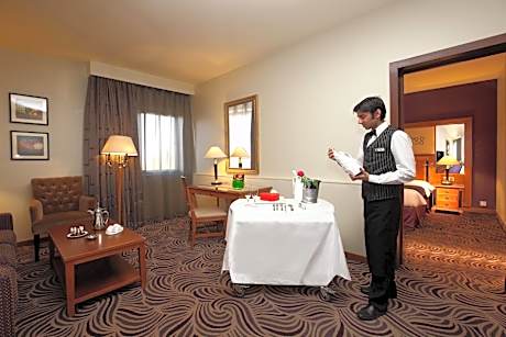 Holiday Inn Tabuk By IHG offers top-notch services and amenities, ensuring guests experience utmost comfort. Share your photos and respond to emails at your convenience, thanks to the free Wi-Fi internet access offered by hotel. Should you require transportation to or from the airport, hotel is able to organize it prior to your arrival date.Services offered by car hire and shuttle at the hotel ensure effortless exploration of Tabuk.Visitors can take advantage of complimentary parking directly at the hotel.Reception services such as concierge service and express check-in or check-out are available to accommodate your requirements. Securing top-notch tickets and snagging sought-after dining reservations become effortless, thanks to the hotel's ticket service and tours. Relax and feel the warmth in the hotel's inviting lobby, featuring an enchanting on-site fireplace.Traveling with minimal baggage is achievable at Holiday Inn Tabuk By IHG, as the hotel's laundromat, dry cleaning service and laundry service ensures your garments stay fresh. Room amenities like 24-hour room service, room service and daily housekeeping contribute to making a perfect selection for your stay.Minor items you neglected to bring won't cause major issues! Simply visit convenience stores to acquire what's necessary.The hotel maintains a completely smoke-free zone, providing a breathable atmosphere. Smoking is limited to specified smoking zones. Each accommodation at Holiday Inn Tabuk By IHG is thoughtfully created and adorned to provide visitors with a comfortable, home-like atmosphere. In certain rooms, the hotel offers linen service and air conditioning for guest convenience and satisfaction.At Holiday Inn Tabuk By IHG, the uniquely tailored rooms provide a configuration choice resembling a balcony or terrace. In select rooms, guests can enjoy a touch of amusement with the availability of television for their entertainment. Rest assured, in a few chosen rooms, you will find the convenience of a refrigerator, a coffee or tea maker and mini bar at your disposal. Maintain your cleanliness and comfort using a hair dryer, toiletries and bathrobes available in select guest restrooms. Embark on your holiday experience in the most ideal manner. Commence each morning of your visit with an on-site breakfast.Experience the delight of a fresh morning by savoring excellent coffee at the cafe situated within hotel.Should you prefer not to venture out for a meal, the enticing culinary choices at hotel are always available for your satisfaction.Experience an unforgettable evening with your fellow travelers just a short distance away, at hotel's bar. For those who prefer savoring meals within their personal space, Holiday Inn Tabuk By IHG offers the convenience of doorstep grocery delivery, allowing you to prepare and enjoy food in your room. Should you be particularly discerning in your dining choices, you will surely appreciate having access to the on-site BBQ facilities provided at this location.Indulge in the numerous pursuits available at Holiday Inn Tabuk By IHG.Unwind after a long day by stopping by massage, salon and spa to rejuvenate your senses. Each day at hotel, immerse yourself in the invigorating waters of the pool, perfect for a rejuvenating plunge or a series of revitalizing laps. Bypass the formal attire and choose a laid-back mixed drink or brew at hotel's waterside lounge.For individuals who don't want to skip their exercise routine, visiting the hotel fitness center ensures you maintain your vitality and wellness. License Number(s): 10002561