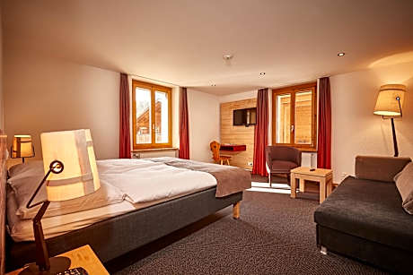 The charming Landhaus hotel right in the heart of Saanen, which is only one mile from Gstaad, offers beautiful country-style guest rooms and tasty Swiss specialties. Spend peaceful nights in your cozy yet elegant room, start every day at the rich and complimentary breakfast buffet and enjoy a delicious cheese fondue in the rustic restaurant. Wi-Fi access is available in the public areas of the Hotel Landhaus.