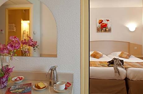 Located just outside the center of Tournus, the Hôtel le Kolibri welcomes you in a lovely green setting. The hotel is equipped with 30 spacious and soundproofed rooms. All rooms at the Hôtel le Kolibri are equipped with free WiFi internet access and a flat-screen TV with Canal+ and beIN Sports. Guests can enjoy the local cuisine in the hotel's restaurant, La Table du Kolibri. The hotel is located near exit 27 of the A6 motorway and free parking is provided, making it easy to explore the Bourgogne region by car. Garages are also available at an additional cost.