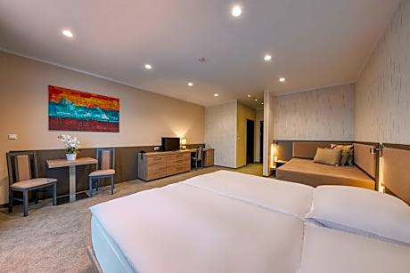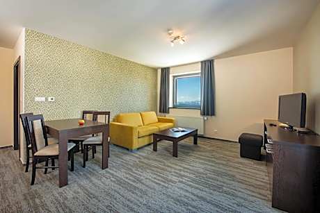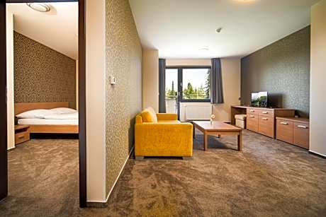 The modern Panorama Resort hotel is located directly at Štrbské Pleso. A wellness area with Finnish, steam, and infrared saunas can be found on the ground floor just behind the reception. Guests can relax in the relaxation zone featuring a tropical shower and comfortable loungers. Each accommodations unit is equipped with satellite TV, free Wi-Fi, modern furniture, and has its own bathroom with either a shower or a bathtub. The Panorama Resort's restaurant offers traditional Slovak dishes as well as international kitchen. Drinks can be enjoyed in the lobby bar. The large garden features a terrace and a children's playground. Parking in the private garage is available free of charge. The hotel's ski bus departs from the hotel garage -2 at pre-scheduled times upon reservation. It provides good connections to the Park Snow Štrbské Pleso ski resort, located 2953 feet away. This service is available during the winter season and can be used free of charge. Štrbské Pleso is just 328 feet from the hotel. Štrbské Pleso train and bus stations are a 2-minute walk from the hotel. Poprad Airport is a 20-minute drive away.