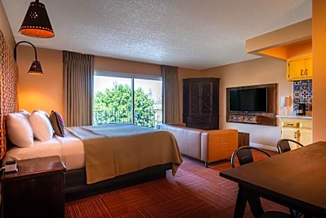 Featuring a heated pool, Hotel Pepper Tree is 10 minutes' drive from Disneyland. This Anaheim hotel offers spacious studios with full kitchens and private balconies. Each room at the property offers a fully equipped kitchen, comfortable bedding, private balconies or courtyard patios. Cooking appliances are also featured in guest rooms. Pepper Tree is a charming hotel with handcrafted furniture. Guests will enjoy amenities such as a free to go breakfast, wireless internet access and business facilities. A barbecue area is also featured. Rustic Mexican tile and handcrafted furniture from Guadalajara is featured in rooms at Hotel Pepper Tree. Studios with Spanish-style kitchens are provided. Hatam Restaurant, one of the best Persian restaurants in Orange County, offers food at Hotel Pepper Tree. The Scratch Room restaurant also provides some of the best breakfast and lunch options in Anaheim Knotts Berry Farm is 2 mi from the Hotel Pepper Tree, while the Anaheim Convention Center and Disneyland are 3.5 mi away. John Wayne Airport is 17 mi away from the property.