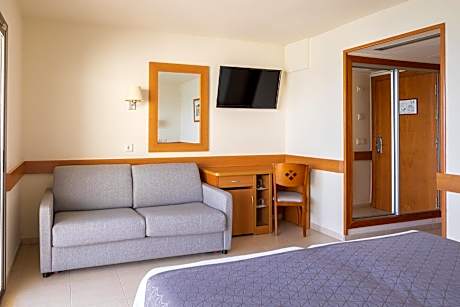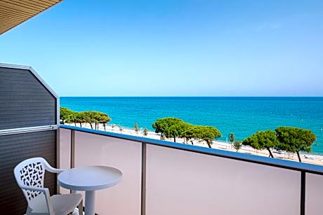 Set overlooking the beautiful sandy beach, this holiday hotel -Adults Only hotel (18+)- is located in the charming Costa Maresme resort of Pineda de Mar. Spend a day in the sunshine on the rooftop terrace, where you will find a wonderful outdoor swimming pool with sea views. Relax by the pool with a drink. You can also make use of the hotel’s sauna and gym. In the evenings you can relax in front of the live entertainment while enjoying a meal from the hotel’s buffet restaurant.