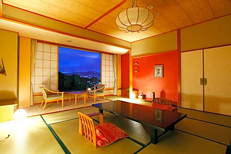 5.7 miles from Shuzen-ji Temple in Izunokuni, Izu-Nagaoka Hotel Tenbo features accommodations with access to a public bath and open-air bath. Each accommodation at the 4-star ryokan has mountain views, and guests can enjoy access to a sauna and a hot spring bath. The ryokan provides rooms with air conditioning, free private parking, and free Wifi. The ryokan offers a TV and a private bathroom with slippers, a hair dryer, and bath. A fridge and kettle are also provided. The rooms are equipped with heating facilities. Available, the breakfast at the property includes buffet dishes along with a selection of fruit and juice. The ryokan is located in a geothermal area, with a number of hot springs for guests to relax in. Guests can also relax in the garden. Mount Daruma is 15 miles from Izu-Nagaoka Hotel Tenbo, while Hakone-Yumoto Station is 26 miles away. License Number(s): 東保衛第3-2号の13