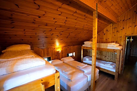 This room has a simple pine interior and bed linen is included. The room is 17.1 square yards.