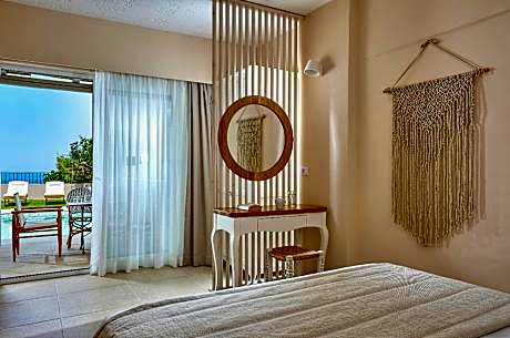Located 328 feet from the scenic Koutouloufari village, Marni is a luxurious village-style complex overlooking the Hersonissos bay. It has 3 swimming pools and a tennis court. Marni Village consists of traditional stone-built apartments, studios and suites with furnished balcony or veranda. They all include a kitchenette, a seating area and a satellite TV. Some units also include a private pool. Air conditioning and a safe are available upon request with surcharge. The pools are surrounded by spacious stone-paved sun terraces offering panoramic views over the bay. 2 separate pools for the children are also available. A la carte breakfast is served daily at the main pool bar’s area. There are 2 more bars serving Cretan and international dishes, local wine and refreshing cocktails. Marni Village is 0.6 mi away from the busy town of Hersonissos with its variety of bars, restaurants and cafes. The traditional villages of Piskopiano and Old Hersonissos are located within walking distance. Some rooms with private pool for 2025 are offering Heated Pool in low season. The private pool will be heated (25oC) during April, May and October (weather conditions may vary dates). License Number(s): 1039Κ033Α0194601
