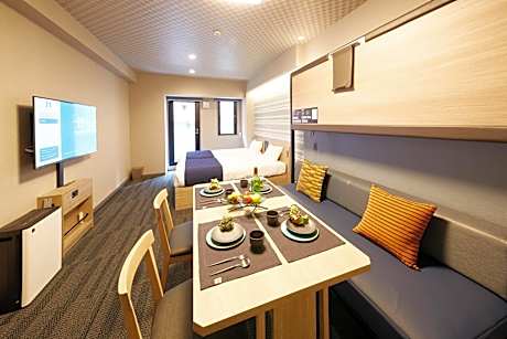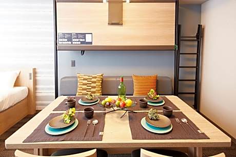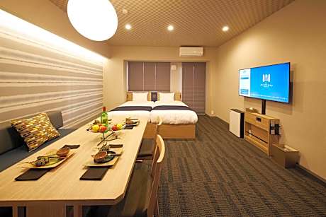 Offering free toiletries, this family room includes a private bathroom with a bath, a shower and a hairdryer. In the kitchenette, guests will find a stovetop, a refrigerator, kitchenware and a microwave. The spacious family room offers air conditioning, a washing machine, tatami, a seating area, as well as a flat-screen TV with streaming services. The unit offers 3 beds and 3 futons.