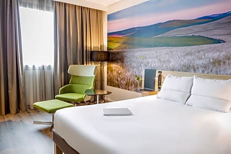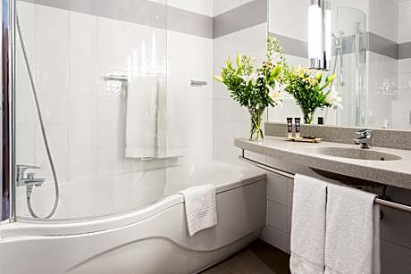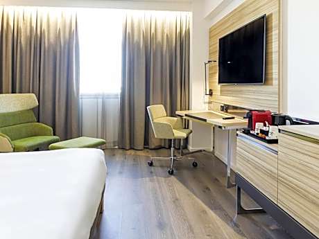 Novotel Sevilla is located in Seville’s Nervión district, next to Sevilla FC’s Sánchez Pizjuán Stadium. It has a rooftop pool with terrace and offers free WiFi. All rooms at the Novotel Sevilla are air-conditioned and come with a private bathroom equipped with hairdryer. Each one has a tea and coffee set. The hotel’s restaurant specializes in Mediterranean food. The bar serves snacks and drinks. It is a 15-minute walk to the old town of Seville, where you can find the Alcázar, the medieval Moorish palace, and Seville Cathedral. From now, the hotel has a new tramway stop 262 ft from the hotel which goes straight to the historic city center. Tramway stop : Eduardo Dato. License Number(s): H/SE/00979