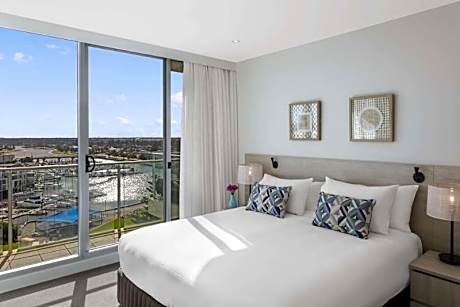 Just 984 feet from Glenelg Beach, Oaks Glenelg Liberty Suites features a heated indoor swimming pool. All apartments are air-conditioned and have views of the Colley Reserve and the Adelaide Hills. Guests enjoy free internet access during their stay. All apartments at Oaks Glenelg Liberty Suites include a fully equipped kitchen and a dining area. Each apartment has a lounge with a TV and DVD player. Guests can relax in the hot tub or work out in the fitness center. Local activities can be arranged at the tour desk at reception. Oaks Glenelg Liberty Suites is 656 feet from the marina. It is a 3-minute walk to the tram stop which connects Glenelg and Adelaide CBD. Adelaide is a within a 30-minute drive away.