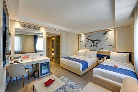 Le Ramada by Wyndham Istanbul Old City offre des services et des équipements haut de gamme pour un confort optimal. Partagez vos photos et répondez à vos e-mails à votre convenance grâce au Wi-Fi gratuit proposé par l'hôtel. Si vous avez besoin d'un transport depuis ou vers l'aéroport, l'hôtel peut l'organiser avant votre arrivée. Les services de taxi et de location de voitures de l'hôtel simplifient l'organisation de vos excursions, découvertes et activités à Istanbul. Des services de réception tels que la conciergerie, l'enregistrement et le départ express, la consigne à bagages et les coffres-forts sont à votre disposition pour répondre à vos besoins. Obtenir des billets de qualité et réserver des restaurants de choix devient un jeu d'enfant grâce au service de billetterie et d'excursions de l'hôtel. Voyager avec un minimum de bagages est possible au Ramada by Wyndham Istanbul Old City, car les services de nettoyage à sec et de blanchisserie garantissent la fraîcheur de vos vêtements. Les prestations des chambres, comme le service en chambre et le ménage quotidien, contribuent à un séjour parfait. L'hôtel propose une zone entièrement non-fumeur, offrant une atmosphère chaleureuse. Chaque hébergement du Ramada by Wyndham Istanbul Old City est soigneusement conçu et décoré pour offrir aux clients une atmosphère confortable et chaleureuse. Certaines chambres offrent un service de linge, des rideaux occultants et la climatisation pour le confort et la satisfaction des clients. Au Ramada by Wyndham Istanbul Old City, les chambres personnalisées offrent une configuration unique, telle un balcon ou une terrasse. Certaines chambres offrent un système de divertissement haut de gamme avec télévision et télévision par câble. Rassurez-vous, certaines chambres sont équipées d'un réfrigérateur, d'eau en bouteille, d'une cafetière ou d'une théière, de thé instantané et d'un minibar. Le Ramada by Wyndham Istanbul Old City met à votre disposition un sèche-cheveux, des articles de toilette et des peignoirs dans les salles de bains de certaines chambres. Vivez des vacances inoubliables. Commencez chaque matinée par un petit-déjeuner sur place. Savourez un délicieux café au café de l'hôtel. Si vous préférez ne pas sortir, l'hôtel propose une sélection alléchante de plats halal pour vous satisfaire. Quels que soient vos besoins alimentaires, le Ramada by Wyndham Istanbul Old City propose une sélection variée de plats halal pour une expérience culinaire des plus agréables. Passez une soirée inoubliable avec vos compagnons de voyage à deux pas, au bar de l'hôtel. Le Ramada by Wyndham Istanbul Old City propose un large choix d'équipements de loisirs. Après une longue journée, détendez-vous grâce aux massages, au hammam, au spa et au sauna. Pour ceux qui souhaitent rester actifs, la salle de sport de l'hôtel vous permettra de maintenir votre vitalité et votre bien-être.