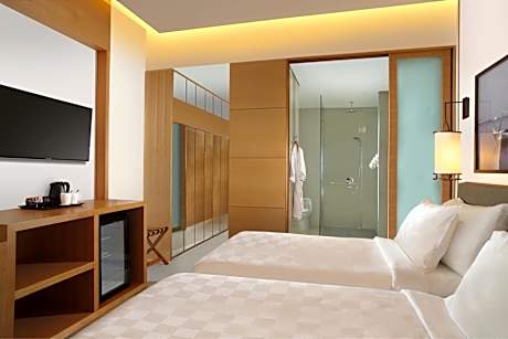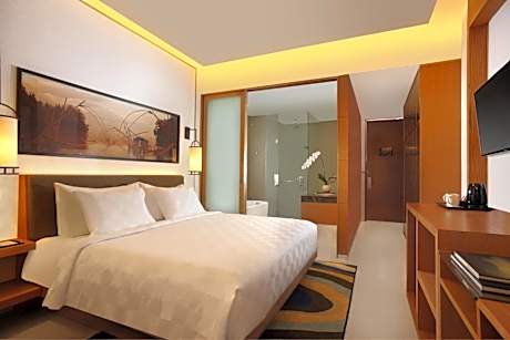 At Resinda Hotel Karawang, exceptional service and top-notch amenities create a memorable experience for guests.Complimentary internet access is available in the hotel to ensure you stay connected during your visit.Arrange your trips to and from the airport using the hotel's convenient transportation services booking. Discover the wonders of Karawang with ease by utilizing the services provided by taxi and car hire. Complimentary parking is available for guests. Continuously receive the support you require through front desk amenities such as concierge service, luggage storage and safety deposit boxes. Always look your best in your preferred attire with the dry cleaning service and laundry service provided at Resinda Hotel Karawang.Craving relaxation? In-room amenities such as 24-hour room service, room service and daily housekeeping allow you to maximize your time spent inside the room.For the health and well-being of all guests and staff, smoking is restricted exclusively to assigned zones.Accommodations come equipped with all the conveniences required for a restful night's slumber. A selection of rooms feature linen service and air conditioning to ensure your comfort and convenience. A few accommodations at Resinda Hotel Karawang also include unique design elements like a separate living room.A few chosen rooms are equipped with television and cable TV to ensure guest amusement.In certain rooms, the hotel offers visitors access to a refrigerator, bottled water, a coffee or tea maker, instant coffee, instant tea and mini bar.In the hotel, certain guest bathrooms come equipped with essential bathroom amenities, such as a hair dryer, toiletries and bathrobes, ensuring a comfortable stay for guests. A delightful breakfast is the perfect way to begin your day, and at Resinda Hotel Karawang, you can always indulge in a scrumptious meal on-site. Allow your journey to be free from the pangs of hunger! On-site eateries offer delicious and accessible meal choices.An evening spent at hotel's bar can offer as much enjoyment as venturing out with your fellow travelers.Are you a fan of preparing your own dishes? You'll certainly appreciate the onsite BBQ facilities and shared kitchen for your culinary needs. At Resinda Hotel Karawang, guests can take pleasure in the delightful recreational amenities provided for their entertainment.Conclude your days in complete tranquility by paying a visit to steam room and sauna for ultimate relaxation. At Resinda Hotel Karawang, a wide array of amenities guarantees a fulfilling experience throughout your visit. Make your holiday truly memorable by taking a rejuvenating plunge into the pool. At the hotel fitness center, you have the option to engage in your daily exercise routine or simply alleviate your jet lag by breaking a sweat.
