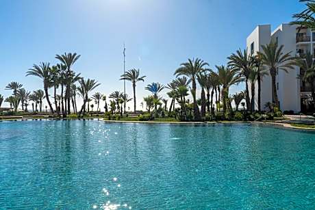 Located just by the sea-side, this 5-star hotel offers 6 restaurants, spa treatments and air-conditioned rooms with balconies. Indoor and outdoor swimming pools are available. Guest rooms at the Hotel The view Agadir have a modern décor and are equipped with a flat-screen TV and a mini-bar. Each room has an private bathroom offering complimentary toiletries and some rooms have a sea view. A buffet breakfast is served daily at the hotel. For other meals, guests are invited to sample Moroccan, Italian or international cuisine in the hotel’s stylish restaurants or enjoy a drink in the bar. Spa facilities available for a supplement include massage and hammam treatments. Additional relaxation facilities include a fitness center, a sauna and a sun terrace where guests can relax surrounded by palm trees. The hotel’s reception desk is open 24 hours a day and Agadir Airport is located 17 mi away. A shuttle service to and from the airport can be organized for a supplement upon request. License Number(s): 80000HT0887