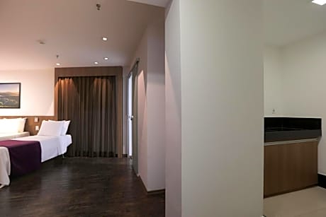 Welcome to San Diego Suítes Governador Valadares! We offer 88 accommodations with views of Pico da Ibituruna, the city's landmark. Governador Valadares, known as the Hang Gliding Capital of the World, attracts adventurers from all over the world for competitions and tours. Our hotel is strategically located in the Morada do Acampamento neighborhood, just a few minutes from GV Shopping, the Train Station and the Municipal Market, as well as easy access to the region's main highways. Check-in: 2:00 p.m. | Check-out: 12:00 p.m. Infrastructure and Services: ✔ Rooms equipped with air conditioning, balcony, safe, cable TV, mini-bar and private bathroom. ✔ Giorgio Gastrô, a gastronomic reference in the city, serving room service only at specific times. ✔ Breakfast included, served: • Mon-Fri: 6:00am-10:00am • Weekends: 6:30am-10:30am ✔ Outdoor pool, open from 7:00am-10:00pm. ✔ Gym available daily from 7:00am-10:00pm. ✔ Ironing service from 9:00am-9:00pm and laundry (Mon-Fri) from 9:00am-5:00pm. ✔ Free parking subject to availability. ✔ Events room for up to 100 people. ✔ 24-hour reception to better serve you. We do not accept animals | Voltage: 110V We are waiting for you!