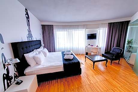 This modern 4-star hotel is ideally located just 1640 feet from Bucharest’s lively city center, offering guests a comfortable stay with a touch of style. The on-site Italian restaurant serves authentic dishes, while complimentary high-speed WiFi is available throughout the property. Art lovers will enjoy the Sarroglia Art Gallery, which showcases a carefully curated selection of works from both established and emerging artists. The hotel’s spacious, air-conditioned rooms are designed with modern furnishings and wooden floors, creating a relaxed yet elegant atmosphere. Each room includes a sleek flat-screen TV along with toiletries, hairdryers, bathrobes and slippers to make every stay more enjoyable. For relaxation and wellbeing, all hotel guests can access the rooftop terrace featuring a hot tub with city views, as well as the indoorss fitness area. Sarroglia Hotel is located 0.9 mi from Calea Victoriei, 2 mi from the Northern Train Station, 11 mi from Henri Coandă International Airport (OTP). Airport transfers can be arranged on request for added convenience. Whether visiting for business or leisure, the hotel offers a welcoming base from which to explore everything Bucharest has to offer. License Number(s): 15632