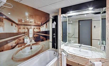 This spacious, air-conditioned room has free Wi-Fi, a mini-bar and a flat-screen TV with international channels. The private bathroom comes with a hairdryer.
