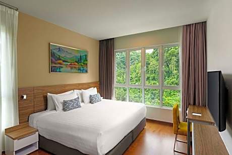TUI BLUE The Haven Ipoh provides flawless service and all the necessary facilities for visitors. Stay connected with your associates, as complimentary Wi-Fi is available during your entire visit. To facilitate your arrival and departure, you can pre-book airport transfer services prior to checking in.The resort offers taxi and shuttle amenities for your ease in navigating around Ipoh. When arriving by car, you'll be grateful for the on-site complimentary parking at resort. The resort offers reception amenities including concierge service, luggage storage and safety deposit boxes to ensure a comfortable stay for guests. Should you require it, the tours can even assist you in booking tickets and securing reservations for the finest shows and events in the vicinity.Whether it's an extended stay or simply needing fresh attire, dry cleaning service and laundry service provided by resort ensures your cherished travel garments stay spotless and accessible. Your stay will be comfortable with the presence of room service and daily housekeeping as an in-room amenity for your relaxation and enjoyment.Need something at the last minute? The convenience stores has you covered, ensuring your requirements are met without any inconvenience. To ensure the well-being and convenience of all visitors, smoking is strictly prohibited throughout the entire resort. Smoking is permitted solely in the specified smoking zones allocated by resort. In order to ensure the utmost level of relaxation, the guestrooms feature an inviting design and are equipped with all basic necessities, creating a delightful stay experience. To ensure a pleasant stay, a selection of rooms at resort come furnished with linen service and blackout curtains, all designed with your ease in mind. Selected rooms offer in-room amusement like television as a source of entertainment for guests to enjoy. Understanding the significance of bathroom facilities in enhancing visitor contentment, resort offers toiletries and bathrobes within a few chosen chambers. Start your day stress-free at TUI BLUE The Haven Ipoh as breakfast is made available for you on the premises. Various excellent meal offerings at resort ensure that enticing and easily accessible options are constantly available. Visitors with specific dietary preferences can savor a variety of culinary styles at TUI BLUE The Haven Ipoh, featuring halal choices to accommodate their needs.Upon your arrival, don't miss experiencing bar for enjoyable in-house evening entertainment.Throughout the day, engage in the entertaining activities available at TUI BLUE The Haven Ipoh.Unwind and conclude each day delightfully by stopping by massage, steam room and spa, ensuring a soothing experience. Unwind by the pool at resort and cherish a leisurely moment.Guests who enjoy maintaining their fitness regimen while on holiday can visit the fitness center provided by resort.