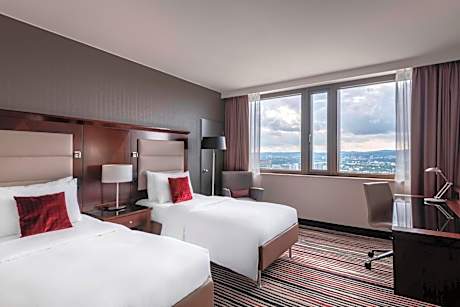 This nonsmoking hotel in Frankfurt offers spacious rooms with panoramic views, a 24-hour fitness center, and underground parking. It stands opposite Frankfurt Messe exhibition grounds, 1640 feet from the Festhalle/Messe Underground Station. The modern, soundproofed rooms of the Frankfurt Marriott Hotel feature a 42-inch flat-screen satellite TV. Some include free M Club Lounge access. Free WiFi is accessible in the public areas of the hotel. A rich breakfast buffet is offered in the hotel's Brasserie ici. Guests can also relax in Cross, which is a bar, lounge, café and à la carte restaurant. The Champions serves American dishes and televises major international sports events. Frankfurt Central Station is 0.6 mi from the hotel, while the A5 motorway is 2.5 mi away.