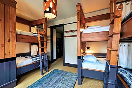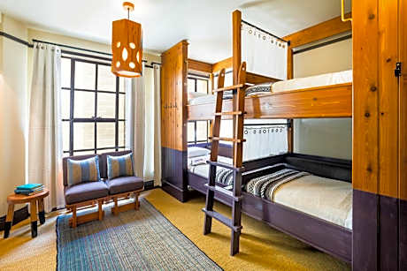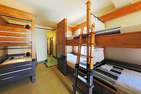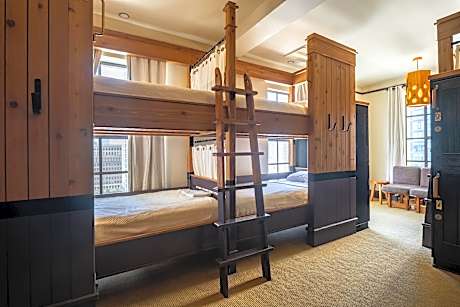 This ladies-only Quad accommodates four female guests, with custom cedar bunk-beds and a private, private bathroom. Beds feature built-in privacy screens, outlets and reading lights. There is also free WiFi, secure in-room lockers, linens, blankets, and towels for each guest. Our rooms have been thoughtfully designed by Roman & Williams, with hand woven textiles and artwork from local Los Angeles artists.