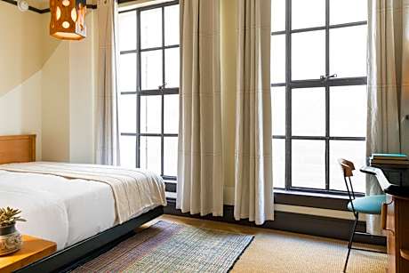 Located 2625 feet from LA Live in Downtown Los Angeles, the Freehand Los Angeles features a rooftop pool & bar with 360-degree views of the city. Guests can also enjoy a meal at The Exchange Restaurant & take advantage of the complimentary WiFi throughout the property. Private rooms offer a flat-screen 49" cable TV and a work desk. Many offer city views and seats by the window. Shared rooms offer bunk beds with sheets, a shared private bathroom, and a locker(locks not provided). The Exchange Restaurant offers Israeli cuisine in a setting that pays homage to the old Owl Pharmacy that used to inhabit the building. The property also features the lobby bar, Rudolphs, and Cafe Integral, which offers coffee in the mornings. You will find a 24-hour front desk and a fitness center. Los Angeles Convention Center is 5 minutes' drive away, while Pershing Square is 3 minutes' drive away. Microsoft Theater is 2953 feet from Freehand Los Angeles, while Staples Center is 0.6 mi from the property. The nearest airport is Los Angeles International Airport, 11 mi away.