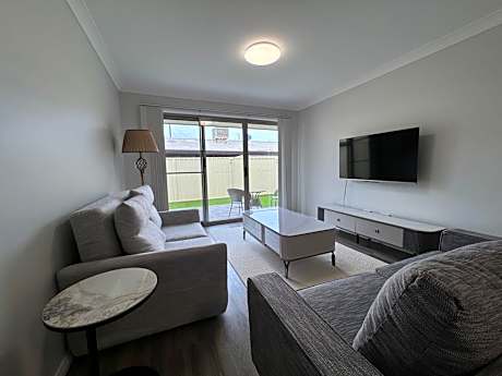 Providing a garden, French Corner Apartments offers accommodations in Dubbo. The air-conditioned accommodation is 4.5 miles from Taronga Western Plains Zoo, and guests can benefit from on-site private parking and complimentary Wifi. Offering a patio and inner courtyard views, the spacious condo hotel includes 2 bedrooms, a living room, flat-screen TV, an equipped kitchen, and 1 bathroom with a bath and a shower. Towels and bed linen are offered in the condo hotel. The property has an outdoor dining area. The nearest airport is Dubbo Airport, 3.1 miles from the condo hotel.