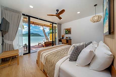 Located 6.6 feet from the beach, suite features sea view and open-air bathroom.