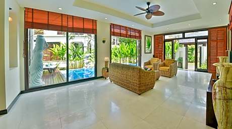 Offering pool views, villa features 3 bedrooms, 3 bathrooms and a private pool. Also includes living and dining areas and a well-equipped kitchen with a stove, mini-bar and microwave.