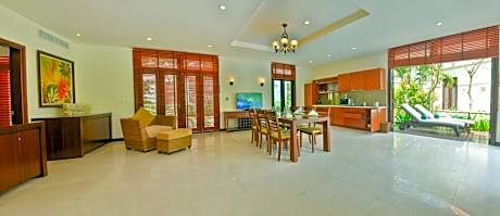 At Furama Villas Danang, exceptional service and top-notch amenities create a memorable experience for guests.Complimentary internet access is available in the resort to ensure you stay connected during your visit.Arrange your trips to and from the airport using the resort's convenient transportation services booking. Discover the wonders of Da Nang with ease by utilizing the services provided by taxi, car hire and shuttle. Complimentary parking is available for guests.Continuously receive the support you require through front desk amenities such as concierge service, express check-in or check-out, luggage storage and safety deposit boxes.At the resort, their ticket service and tours is also capable of assisting with booking tickets and securing reservations for entertainment and adventures.Chilly nights become more delightful than balmy ones, as you snuggle near the resort's inviting hearth. Always look your best in your preferred attire with the laundromat, dry cleaning service and laundry service provided at Furama Villas Danang. Craving relaxation? In-room amenities such as 24-hour room service, room service and daily housekeeping allow you to maximize your time spent inside the room.Due to health concerns, smoking is strictly prohibited within the entire premises of resort. For the health and well-being of all guests and staff, smoking is restricted exclusively to assigned zones.Accommodations come equipped with all the conveniences required for a restful night's slumber.A selection of rooms feature linen service, blackout curtains and air conditioning to ensure your comfort and convenience.A few accommodations in Furama Villas Danang incorporate separate living room and balcony or terrace into their architectural arrangement. A few chosen rooms are equipped with daily newspaper, television, in-room video streaming and cable TV to ensure guest amusement.In certain rooms, the resort offers visitors access to a refrigerator, a coffee or tea maker, bottled water, instant coffee and instant tea. Furama Villas Danang offers a hair dryer, toiletries and bathrobes in the restrooms of specific accommodations. A delightful breakfast is the perfect way to begin your day, and at Furama Villas Danang, you can always indulge in a scrumptious meal on-site. All adore a delightful cup of coffee! An on-site coffee shop ensures you can relish a cup of authentic, freshly-brewed coffee every morning -- or whenever you desire it. Allow your journey to be free from the pangs of hunger! On-site eateries offer delicious and accessible meal choices. An evening spent within the resort's bar, nightclub and casino may prove to be just as entertaining as venturing out with your fellow adventurers.At Furama Villas Danang, affordable refreshments are available 24/7 through the convenient vending machines on-site.Are you inclined to prepare your own dishes? You will surely appreciate having the on-site BBQ facilities available. At Furama Villas Danang, guests can take pleasure in the delightful recreational amenities provided for their entertainment.At the resort, a wide range of enjoyable activities ensures that there's never a dull moment during your visit. Don't miss out on the easily reachable beach in the vicinity. Conclude your days in complete tranquility by paying a visit to massage, salon, steam room and spa for ultimate relaxation.At Furama Villas Danang, a wide array of amenities guarantees a fulfilling experience throughout your visit. Make your holiday truly memorable by taking a rejuvenating plunge into the pool.At Furama Villas Danang, the poolside bar provides an excellent incentive to enjoy extended hours in your swimwear.At the resort fitness center, you have the option to engage in your daily exercise routine or simply alleviate your jet lag by breaking a sweat.