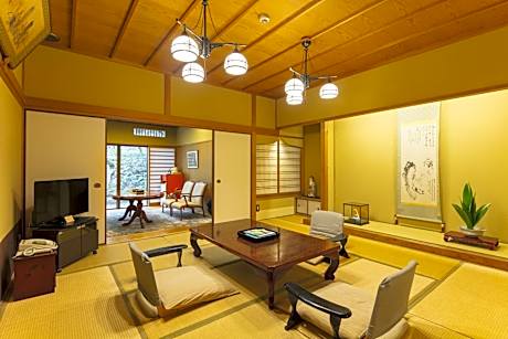 Located in Chikushino, 1640 feet from Buso-ji Temple, Daimaru Besso has a number of amenities including a bar and free WiFi. Featuring luggage storage space, this property also provides guests with a restaurant. The rooms at the ryokan are equipped with a seating area and a flat-screen TV. All units will provide guests with a fridge. Daimaru Besso offers 5-star accommodations with a hot spring bath. Dazaifutenmangu is 20 minutes drive away. Fukuoka Airport is 7.5 mi away.