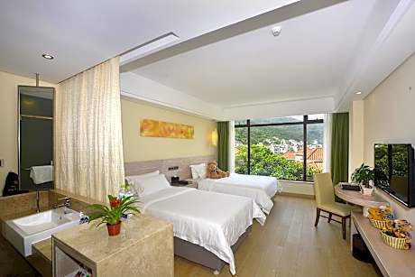 At Galaxy Bay Resort, exceptional service and top-notch amenities create a memorable experience for guests.Complimentary internet access is available in the resort to ensure you stay connected during your visit. Discover the wonders of Jiangmen with ease by utilizing the services provided by taxi and shuttle.Complimentary parking is available for guests. Continuously receive the support you require through front desk amenities such as concierge service, express check-in or check-out and luggage storage.At the resort, their tours can even assist you in booking tickets and securing reservations for leisure activities and adventures. At the resort, utilize the convenient dry cleaning service to maintain your preferred travel attire fresh, allowing you to pack lighter.Craving relaxation? In-room amenities such as 24-hour room service and room service allow you to maximize your time spent inside the room.Due to health concerns, smoking is strictly prohibited within the entire premises of resort. Accommodations come equipped with all the conveniences required for a restful night's slumber. A selection of rooms feature blackout curtains and air conditioning to ensure your comfort and convenience.A few chosen rooms are equipped with daily newspaper, television and cable TV to ensure guest amusement. In certain chosen rooms, bottled water is conveniently available for your use.Galaxy Bay Resort offers a hair dryer and toiletries in the restrooms of specific accommodations. Allow your journey to be free from the pangs of hunger! On-site eateries offer delicious and accessible meal choices.An evening spent at resort's bar can offer as much enjoyment as venturing out with your fellow travelers. Are you inclined to prepare your own dishes? You will surely appreciate having the on-site BBQ facilities available.