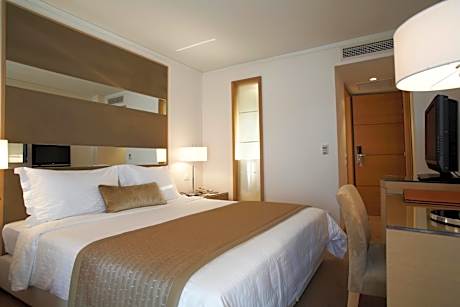 Located in Heraklion's elegant district, this 5-star hotel offers 2 gourmet restaurants, a free wellness center and a large freshwater pool. Luxurious rooms feature balconies with pool and city views. Air-conditioned rooms are equipped with pure Egyptian cotton linen and pure wellness or hypoallergenic rooms are available. Some units feature whirlpools. Vetri Restaurant serves an American buffet breakfast prepared with fresh, local ingredients and Cretan cuisine. Per Se Lounge offers casual meals, wines and cocktails. The Pool Deck serves light meals and drinks. Every Friday between May and October, a live music event is hosted at Galaxy Iraklio Hotel. Room service is available with additional in-room dishes. Galaxy also includes a state-of-the-art conference center, with 9 fully equipped halls and a total capacity of 1000 people. Galaxy Hotel’s Wellness Club is open 24 hours a day and its use is free to all guests. It includes a state-of-the-art gym and an all-marble steam room. Guests of Galaxy Iraklio Hotel are within a 10-minute walk from the city center and shopping and historic attractions. Knossos archaeological site is a 10-minute drive. Heraklion International Airport is at 3.1 mi. Staff at the 24-hour reception can arrange tickets and car rentals. Free public parking is possible on site.