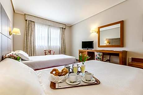 Located in the center of Pontevedra, Galicia Palace offers elegant accommodations with free WiFi. It is just 10 minutes' walk from Pontevedra Bus and Train Station. All rooms at Galicia Palace include air conditioning, heating and flat-screen satellite TV. Each has a private bathroom with a shower and a hairdryer. You can enjoy breakfast including juice, fruit, yogurt, pastries and tea or coffee. Traditional Galician food is served for lunch and dinner. Drinks and refreshments are available at the on-site coffee shop and guests can enjoy room service since 13:30 to 15:00 and 20:30 to 22:30 There are many beautiful beaches within 30 minutes’ drive of the hotel, including the beaches at Agrelo and Loureiro.