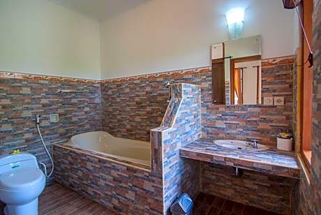 Featuring free Wi-Fi and a balcony overlooking the garden, the fan-cooled room includes a desk and wardrobe. Both a shower and bathtub are provided in the private bathroom.