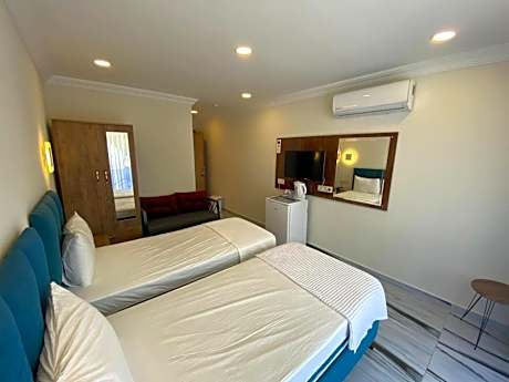 Garden Butik & Apart Hotel Akbük provides beachfront accommodations in Didim. Both free Wifi and parking on-site are accessible at the condo hotel free of charge. The accommodation features room service and daily room service for guests. The units at the condo hotel feature private entrance and soundproofing so guests can enjoy a peaceful stay. A balcony, a satellite flat-screen TV streaming services, an air conditioning, and a heating are available in each unit. At the condo hotel, every unit is equipped with a private bathroom with slippers and a hair dryer. Guests are welcome to eat at the on-site family-friendly restaurant, which is open for dinner, lunch, and brunch. A car rental service and a private beach area are featured at Garden Butik & Apart Hotel Akbük. Dolphin Square is 15 miles from the accommodation, while Didim Marina is 16 miles away. Milas-Bodrum Airport is 31 miles from the property, and the property offers a paid airport shuttle service.
