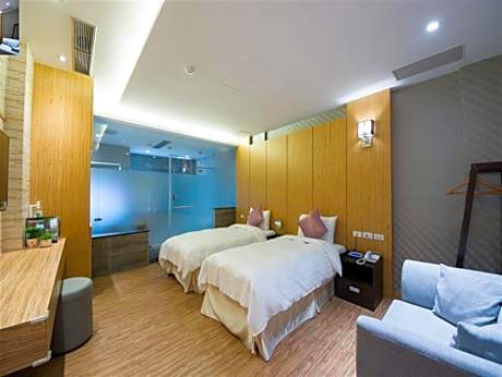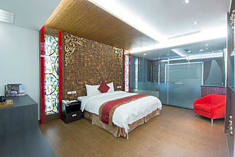 This room type is decorated in different themes, coming with a LCD TV, a mini fridge, a hairdryer, an electric kettle and a hot spring tub.