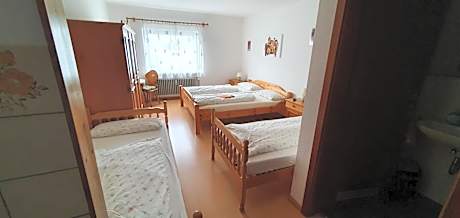 The quadruple room features a wardrobe, parquet floors, as well as a private bathroom featuring a bath and a shower. The quadruple room provides a TV with satellite channels, a private entrance, a mini-bar, a tea and coffee maker as well as mountain views. The unit offers 3 beds.