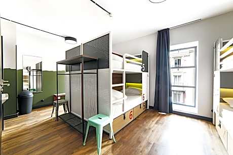 The dormitory room provides air conditioning, parquet floors, as well as a private bathroom featuring a bath and a shower. Rooms on the upper floors are reachable by elevator. The unit offers 8 beds.