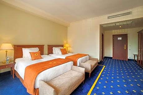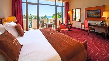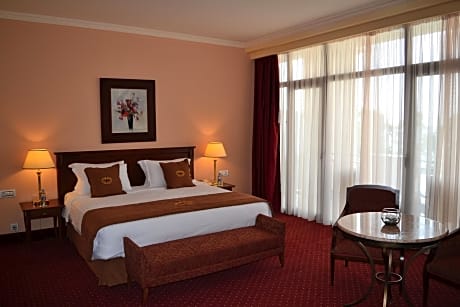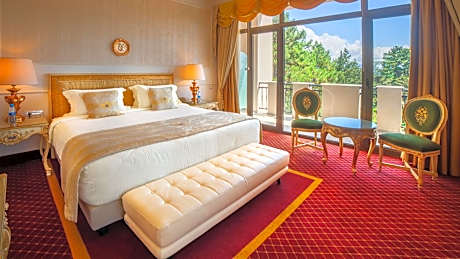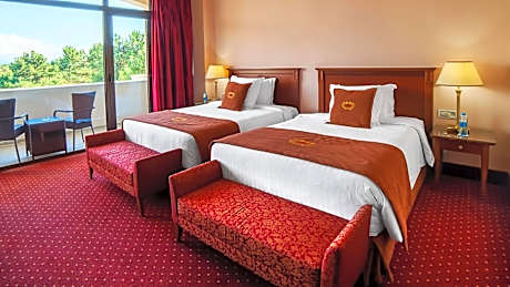 Located in the resort of Kobuleti, this modern hotel features a large outdoor pool, open-air restaurant and rooms with a balcony, offering beautiful views of the Black Sea or Ajarian Mountains. Stylish, air-conditioned rooms at the Georgia Palace Hotel & Spa feature satellite TV, a mini-bar and free wired internet. The private bathrooms include a bathrobe and slippers. The Adjara Restaurant serves breakfast, lunch and dinner. Guests enjoy a selection of barbecue dishes and fine, French cuisine in the seasonal Roof Garden, with an open-top terrace and scenic sea views. The spa center features a sauna, indoor pool and gym, and beauty treatments can also be booked here. WiFi is available in public areas. Kobuleti Train Station is a 10-minute drive away. A shuttle service from the Georgia Palace Hotel & Spa to Batumi Airport, 19 mi away, can also be arranged.