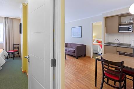 Featuring a fitness center, Geotel Calama offers self-catering apartments with free WiFi access in Calama. The city center is located 3 blocks away. Each apartment features a seating area, private bathroom with free toiletries, cable TV and a fully equipped kitchen. City views can be enjoyed from here. A daily breakfast is included. At Geotel Calama guests will find a garden, a terrace and a snack bar. Other facilities like a shared lounge, an ironing service and laundry facilities are offered. The property offers free parking.