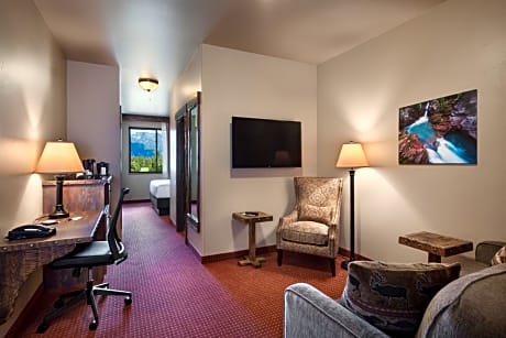 Located in Kalispell, 8.9 miles from Big Sky Waterpark, Glacier International Lodge provides accommodations with a fitness center, private parking, a garden and a shared lounge. Each room at the 2-star hotel has mountain views, and guests can enjoy access to a terrace and to an indoor pool. The property has a 24-hour front desk, airport transportation, an ATM and free WiFi throughout the property. Guest rooms are equipped with air conditioning, a flat-screen TV with satellite channels, a fridge, a coffee machine, a shower, free toiletries and a desk. Rooms are complete with a private bathroom equipped with a hairdryer, while certain rooms at the hotel also offer a seating area. Guest rooms include a closet. A buffet, continental or American breakfast is served at the property. At Glacier International Lodge guests are welcome to use a hot tub. A business center and vending machines with snacks and drinks are available on site at the accommodation. Glacier Park International Airport is a few steps away.