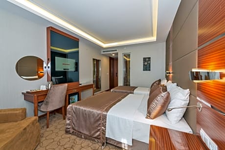 Experience an abundance of unparalleled facilities and features at Glorious Hotel.Maintain seamless communication using the complimentary Wi-Fi at hotel.Effortlessly arrange transportation to and from the airport using the hotel's airport transfer services. Discover the wonders of İstanbul with ease by utilizing the services provided by car hire and shuttle. Guests can avail parking facilities at the hotel. During your stay at this fantastic hotel, the attentive front desk personnel can provide you with a range of amenities such as concierge service, luggage storage and safety deposit boxes.In search of city's top entertainment, seek assistance at the hotel's ticket service and tours for reservations. At the hotel, utilize the on-site dry cleaning service and laundry service to maintain your beloved travel attire fresh, allowing you to bring fewer clothes.Craving relaxation? Make the most of your stay at the Glorious Hotel with convenient amenities like room service and daily housekeeping at your disposal.Kindly note that smoking is prohibited in the hotel to ensure fresher air for all visitors. At Glorious Hotel, every guestroom is provided with convenient amenities and fittings to ensure a comfortable stay. Elevate your experience at hotel with the knowledge that certain rooms are equipped with air conditioning, ensuring a more pleasant stay for you.Certain rooms boast in-room amusement features such as daily newspaper, television and cable TV, offering guests an enjoyable stay.In select rooms within the hotel, bottled water, a coffee or tea maker and mini bar is available to cater to your requirements when desired. In the hotel, certain guest bathrooms come equipped with essential bathroom amenities, such as a hair dryer and toiletries, ensuring a comfortable stay for guests. Begin your day with a scrumptious on-site breakfast available each morning at Glorious Hotel. Begin your day feeling refreshed and invigorated as you enjoy a delightful cup of quality coffee available at the cafe situated within the hotel. At the hotel, an assortment of easily accessible and delicious meal choices are available to satisfy your appetite whenever it strikes.Enjoy an entertaining evening with your fellow travelers at the hotel's bar. During your stay at hotel, an array of engaging activities and amenities guarantees a delightful experience. Conclude your holiday perfectly with a visit to massage, hot tub, salon, steam room and sauna on your final days.