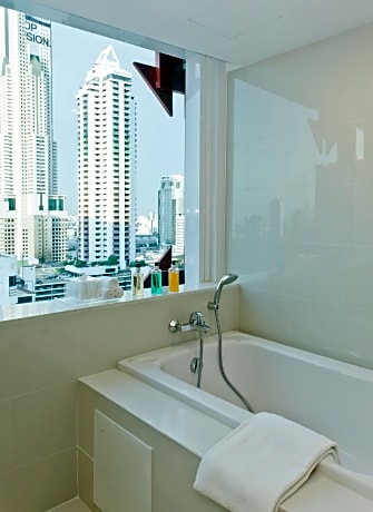 VELA Dhi GLOW Pratunam offers top-notch services and amenities, ensuring guests experience utmost comfort. Share your photos and respond to emails at your convenience, thanks to the free Wi-Fi internet access offered by hotel.Should you require transportation to or from the airport, hotel is able to organize it prior to your arrival date. Taxi offerings at the hotel enhance the ease of discovering Bangkok. Visitors can take advantage of complimentary parking directly at the hotel.Reception services such as concierge service, luggage storage and safety deposit boxes are available to accommodate your requirements.Securing top-notch tickets and snagging sought-after dining reservations become effortless, thanks to the hotel's ticket service and tours. Traveling with minimal baggage is achievable at VELA Dhi GLOW Pratunam, as the hotel's dry cleaning service and laundry service ensures your garments stay fresh.Room amenities like room service and daily housekeeping contribute to making a perfect selection for your stay. The hotel maintains a completely smoke-free zone, providing a breathable atmosphere. Each accommodation at VELA Dhi GLOW Pratunam is thoughtfully created and adorned to provide visitors with a comfortable, home-like atmosphere.In certain rooms, the hotel offers linen service, blackout curtains and air conditioning for guest convenience and satisfaction.At VELA Dhi GLOW Pratunam, the uniquely tailored rooms provide a configuration choice resembling a balcony or terrace.In select rooms, guests at the hotel can enjoy top-notch in-room entertainment with television and cable TV available for their convenience.Rest assured, in a few chosen rooms, you will find the convenience of a refrigerator, bottled water, a coffee or tea maker and mini bar at your disposal.Understanding the significance of bathroom facilities in enhancing visitor contentment, hotel offers a hair dryer, toiletries, bathrobes and towels within a few chosen chambers. Embark on your holiday experience in the most ideal manner. Commence each morning of your visit with an on-site breakfast.Experience the delight of a fresh morning by savoring excellent coffee at the cafe situated within hotel. Should you prefer not to venture out for a meal, the enticing culinary choices at hotel are always available for your satisfaction.Experience an unforgettable evening with your fellow travelers just a short distance away, at hotel's bar. Throughout the day, engage in the entertaining activities available at VELA Dhi GLOW Pratunam. Unwind after a long day by stopping by massage, steam room and spa to rejuvenate your senses.Each day at hotel, immerse yourself in the invigorating waters of the pool, perfect for a rejuvenating plunge or a series of revitalizing laps.For individuals who don't want to skip their exercise routine, visiting the hotel fitness center ensures you maintain your vitality and wellness.
