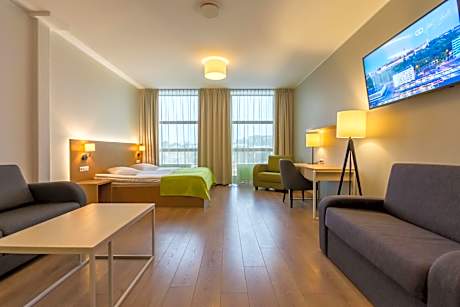 Go Hotel Shnelli is near the medieval Old Town of Tallinn, close to the Balti Jaam Railway Station. It provides rooms with satellite TV and free Wi-Fi. It also offers beauty procedures. All rooms of the Shnelli feature a work desk and a private bathroom with a shower. Some have a view of the Old Town. Reakoja Plats, the heart of the Old Town is within 1804 feet. The Tallinn Bus Station is 2.5 mi away and the airport is 3.1 mi from the hotel. For guests convenience a 24-hour front desk and a cash machine are available on site. The hotel is 1312 feet from Telliskivi Creativity Center and Kalamaja area. Hotel's restaurant serves European cuisine, cakes, quick lunches and a buffet breakfast. Cozy and Comfortable Stay in the Heart of Tallinn. Go Hotel Shnelli is an ideal place to stay for both leisure travelers and business clients who appreciate an excellent location, affordable prices, and friendly service. We are located right next to Balti Jaam – the city’s main transport hub, with easy access by bus, tram, trolley, and train. Additionally, we offer convenient parking options – guests can park their car in the hotel’s parking lot for an affordable price. Hotel is within a short walking distance of Tallinn’s Old Town and Town Hall Square, the vibrant Balti Jaam Market, and the Telliskivi Creative City, which is home to numerous restaurants, bars, cafés, and design shops. Stylish and Comfortable Rooms Our hotel offers different room categories to cater to each guest’s needs. The superior rooms offer beautiful views of historic Toompea, while family and standard rooms overlook the trendy Kalamaja district. Rooms include soundproof windows, LCD TVs, and free Wi-Fi. Seminars and Events Hotel offers three seminar rooms equipped with modern technology, suitable for various business meetings and events: Meeting room for up to 9 people Lounge for up to 20 people Seminar room for up to 60 people All seminar rooms can be combined to create a larger and multifunctional meeting space. Private Sauna and Party Room In addition to seminar rooms, the complex also features a private sauna with a spacious party room for up to 30 guests – perfect for birthdays, corporate events, and private gatherings. Eco-Certified Hotel Hotel have been awarded the international Ecostars certification, which highlights our commitment to sustainable and environmentally friendly hospitality. Culinary Experiences at Shnelli Resto In-house restaurant, Shnelli Resto, accommodates up to 80 guests and offers a rich buffet breakfast, business lunch specials (Monday - Friday), and à la carte dinners. We also provide group catering and options for private events. Restaurant is open daily till Su - Th till 22:00 and Friday / Saturday 23:00. Breakfast is served every day from 7:00 - 11:00 We look forward to welcoming you – enjoy a comfortable stay and warm hospitality in the heart of Tallinn!