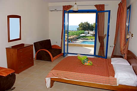 The Gold Apartments boast a private beach with beach bar, a swimming pool and separate pool for children. Pool umbrellas and lounge chairs are provided free of charge. Gold Apartments offers fully furnished, self-catering accommodations. All rooms are tastefully decorated, featuring cable TV, air conditioning, and a bathroom with hairdryer. Guests can taste a hearty meal at the hotel’s traditional restaurant which is open from early in the morning until late at night and a drink at the pool bar. Free parking is also available.