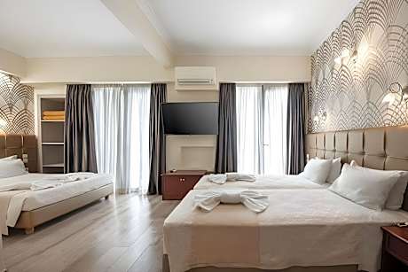 Just 1312 feet from Metaxourgeio Metro Station, Athens Golden City Hotel provides free Wi-Fi in public areas. Offering panoramic Athens views, the rooftop restaurant serves breakfast and dinner with Greek dishes. The air-conditioned rooms at Athens Golden City Hotel are spacious and equipped with a satellite TV, fridge and ironing facilities. Each is decorated with earthy colors, carpeted floors and draped curtains. A Greek breakfast is served daily. The on-site bar serves lunch, as well as light snacks, sweets and drinks. The hotel features an internet café where guests can have gourmet coffees while surfing the internet. The entertainment area of Psirri with many taverns, restaurants and bars is 2625 feet away. Acropolis and the Acropolis Museum are within a 10-minute walk. Staff at the 24-hour front desk can arrange car rentals and book tickets and taxis.